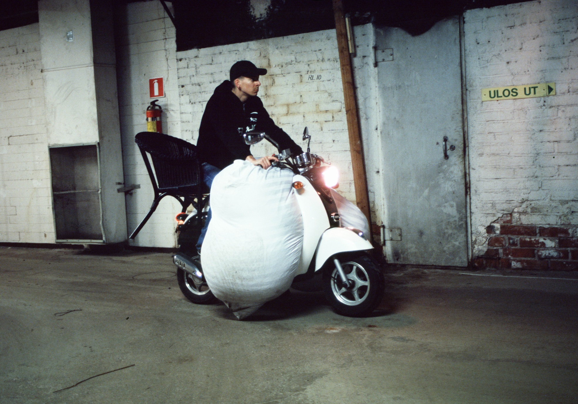 Mutual Issues, Inventive Acts, 2008 is a project by Ahmet Ögüt based on precise observations of daily life on Istanbul’s streets. The artist shows eight large-format photographs in which found scenes – for example, a man trying to repair a street lamp by standing on two ladders, one on top of the other – were restaged in various European cities, as well as a selection of drawings of other inventive plots. These practical ideas for adversities of all kinds seem, at first glance, rather absurd, but they point to the conditions under which people live in their respective social and economic contexts.