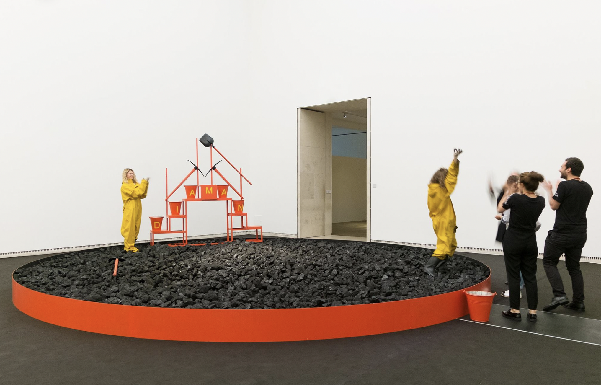 Installation with a small piece of museum wall, twelve tons of coal, diamond