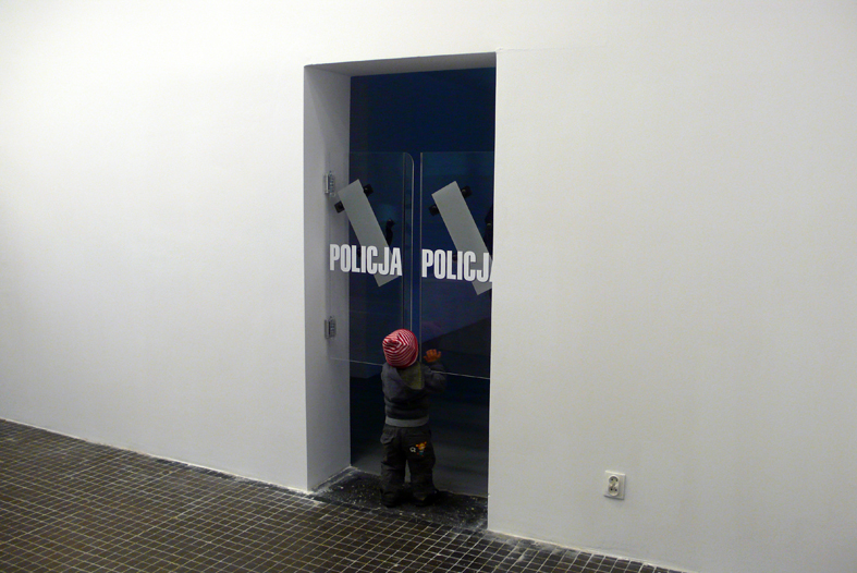 . ![]() The Swinging Doors | 2009 | original riot shields | 90 x 52,5 cm (each) | view from Peep-Hole Milan ![]() The Swinging Doors | 2009 | riot shields | 90 x 52,5 cm (each) | view from Warsaw Museum of Modern Art |